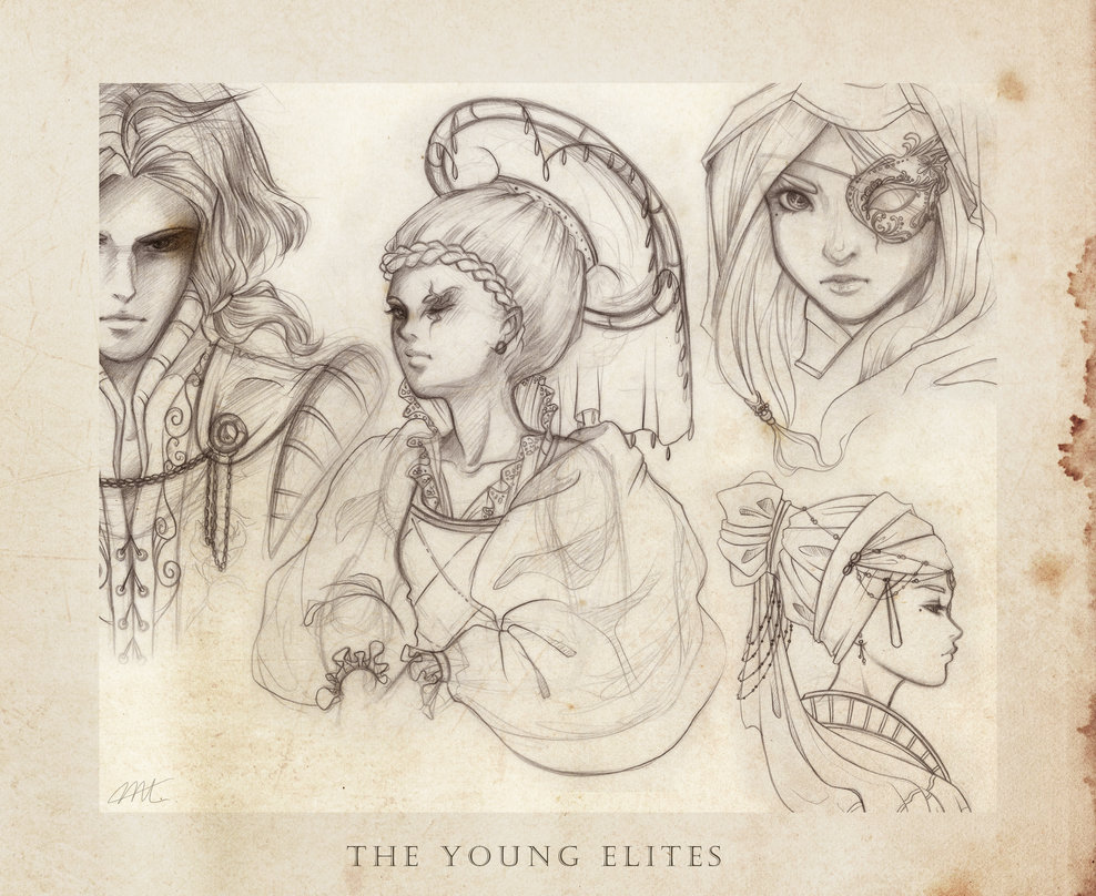 Early sketches by Marie Lu of Adelina and Enzo.